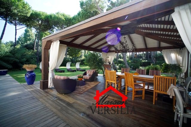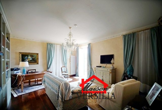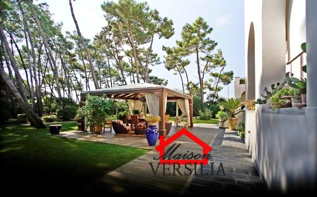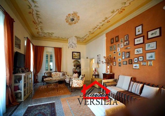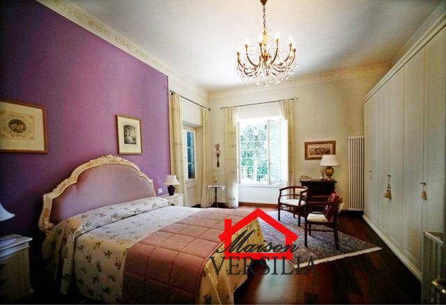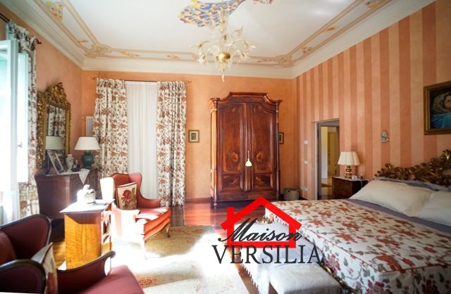 Ubicata a pochi passi dal lido del mare, vendesi maestosa villa di 1.000 mq oltre 10.000 metri di parco.\n\nL'immobile vanta una storia antica: venne costruito nel 1923 ed era in origine di proprietà di una famiglia conosciuta in tutto il mondo grazie al loro marchio nell'alta moda sartoriale italiana.\n\nNel 2008 è stato ristrutturato pur mantenendo lo stile architettonico originario, ed è stata costruita la piscina oltre al campo da tennis.\n\nLa villa si sviluppa su tre piani: piano terra, piano primo e secondo piano.\n\nRifinita con materiali di alto pregio, consta internamente di 10 suite e 10 bagni, oltre soggiorni, sala da pranzo e living, lavanderia, stireria e zona adibita ad alloggio della servitù.\n\nIl piano rialzato si apre con un elegante ingresso, che porta alla zona giorno, ampia e luminosa, con pavimenti in graniglia genovese, splendidi soffitti finemente affrescati, un bellissimo camino che rende la sala calda e accogliente e la cucina con sala da pranzo. Sempre su questo piano si trova una raffinata suite con bagno annesso e salottino di pertinenza. Qui è anche ubicato un piccolo appartamento indipendente per i domestici, più un ulteriore bagno per gli ospiti, e una zona lavanderia e stireria. La splendida scala in marmo bianco antico e vetro decorato, perfettamente mantenuta, conduce al piano primo dell'immobile, il cui soffitto è interamente affrescato. Su questo piano si trovano quattro eleganti suite con bagni annessi, di cui una con un incantevole loggiato privato, un ulteriore bagno, uno studio e la meravigliosa e ampia terrazza panoramica con vista mozzafiato sul mare vicinissimo. Al secondo piano dell'immobile è ubicata la mansarda, composta da due suite con bagni annessi, un salotto, una camera da letto singola, un bagno, un ripostiglio e una stanza con predisposizione per la realizzazione di una cucina.\n\nAttorno a questa magnifica villa, si sviluppa un meraviglioso giardino di 10.000 mq, perfettamente curato con prato all'inglese e abbellito da siepi, alberi di vario fusto e romantici fiori perenni. A rendere il giardino il luogo perfetto per rilassarsi e godersi la bella stagione, la piscina di recente costruzione, circondata dal solarium, perfettamente arredata con ogni comfort. Annesso alla piscina, un bagno con uno spogliatoio dotato di docce esterne. \n\nCompletano questa magnifica proprietà una casetta adibita a ripostiglio e un campo da tennis regolare. - Maggiori Dettagli: Porta blindata, Campo da tennis, Piscina, Giardino, Allarme, aria condizionata, Videosorveglianza, Camino