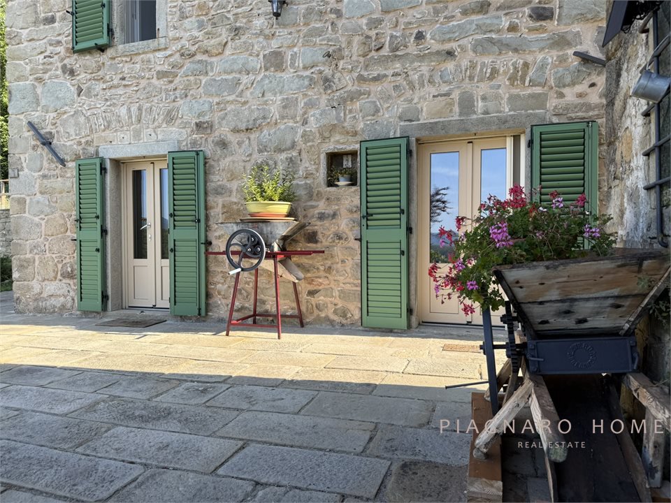 Splendido casale in pietra completamente ristrutturato immerso nel verde, e circondato dal terreno di proprietà esclusiva. La proprietà comprende l'unità abitativa, la stalla/fienile, il terreno, piccolo locale di rimessaggio attrezzi agricoli e pergolato per auto. La casa è stata completamente ristrutturata e i lavori sono terminati alcuni mesi fà. Dalle fondamenta al tetto, dagli impianti agli infissi è tutto nuovo e con scelta di materiali di ottimo pregio e fattura. Il pavimento in gres, infissi con vetro tripla camera in alluminio rivestito in PVC con incorporato zanzariere. Sistema fognario di ultima generazione con fossa imhoff e degrassatore. Qui a Succisa è appena arrivato il metano e c'è la predisposizione per l'allaccio. Ad oggi il sistema di riscaldamento è garantito da caldaia a Pellet 5 stelle con puffer da 500 litri per produzione anche di acqua calda sanitaria (assistito dal solare termico). Porta blindata e cancello carrabile assicurano sicurezza alla proprietà. Ci sono anche due locali al piano terra utilizzati uno come locale tecnico che ospita l'impiantistica della casa e predisposizione lavanderia, l'altro come taverna per ristoro e convivialità. La stalla fienile, su due livelli di oltre 40 metri quadri l'uno, è ad oggi al grezzo da ristrutturare in base alle esigenze del futuro proprietario, sapendo che si può fare il cambio di destinazione d'uso e trasformarla in altra abitazione. Ci sono già predisposti gli impianti. L'allaccio idrico è da sorgente privata e il costo annuo è di 50 € per l'utilizzo potabile e 10 € per irrigazione. Allegato all'annuncio ci sono le planimetri degli immobili e la mappa. Questa proprietà è adatta a chi cerca un immobile pronto da vivere già arredato con gusto e con il grande potenziale di personalizzare la stalla/fienile in base alle proprie esigenze. A richiesta è disponibile un video che mostra ogni dettaglio della proprietà che invio su richiesta. Sul sito www.piagnarohome sono presenti 112 foto. - Maggiori Dettagli: Terreno, Porta blindata